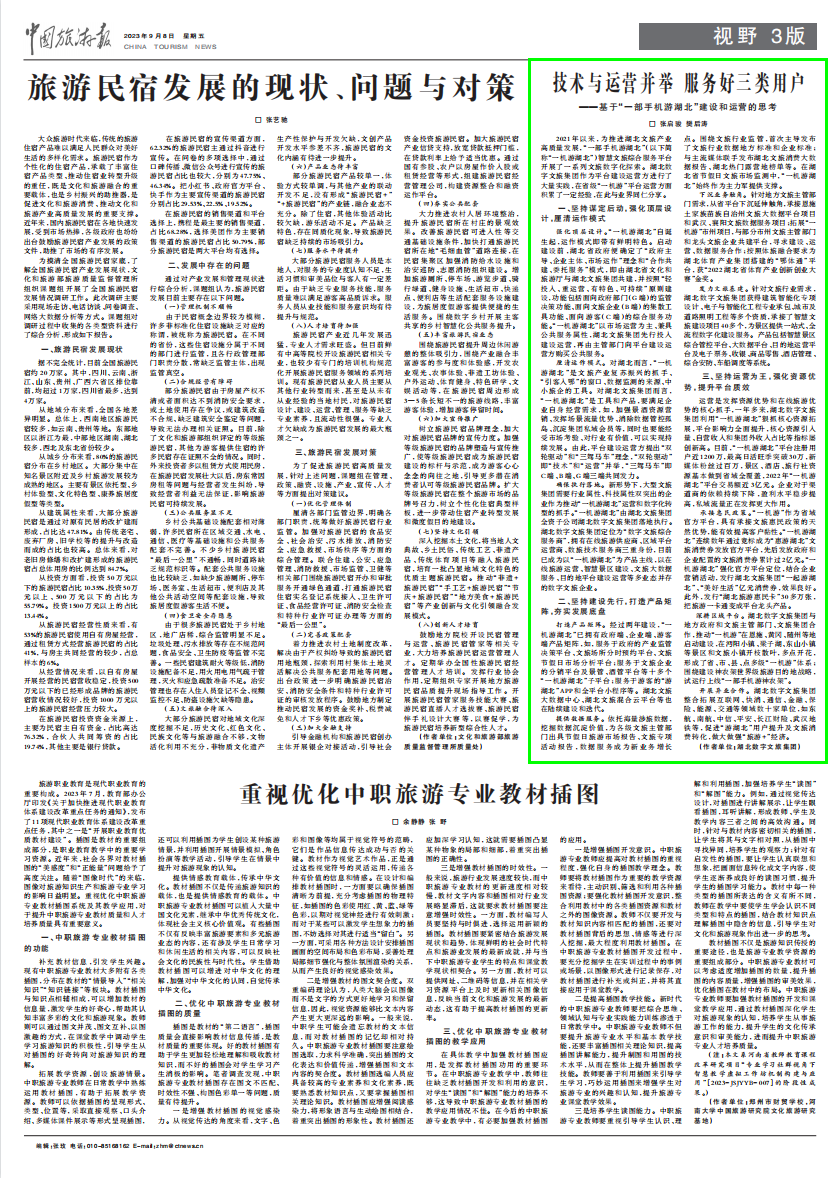 編者按:2023年9月8日,《中國旅游報》以《技術(shù)與運營并舉 服務好三類用戶——基于“一部手機游湖北”建設(shè)和運營的思考》為題,刊發(fā)了湖北數(shù)字文旅集團署名文章,現(xiàn)將相關(guān)內(nèi)容轉(zhuǎn)載如下。 □ 張啟駿 樊后濤 2021年以來,為推進湖北文旅產(chǎn)業(yè)高質(zhì)量發(fā)展,“一部手機游湖北”(以下簡稱“一機游湖北”)智慧文旅綜合服務平臺開展了一系列文旅數(shù)字化探索。湖北數(shù)字文旅集團作為平臺建設(shè)運營方進行了大量實踐,在省級“一機游”平臺運營方面積累了一定經(jīng)驗,在此與業(yè)界同仁分享。 一、堅持謀定后動,強化頂層設(shè)計,厘清運作模式 強化頂層設(shè)計。“一機游湖北”自誕生起,運作模式即帶有鮮明特色。啟動建設(shè)前,湖北省政府便確定了“政府主導、企業(yè)主體、市場運作”理念和“合作共建、委托服務”模式,即由湖北省文化和旅游廳與湖北文旅集團共建,并按照“輕投入、重運營、有特色、可持續(xù)”原則建設(shè),功能包括面向政府部門(G端)的監(jiān)管決策功能、面向文旅企業(yè)(B端)的集散工具功能、面向游客(C端)的綜合服務功能。“一機游湖北”以市場運營為主、兼具公共服務屬性,湖北文旅集團先行投入建設(shè)運營,再由主管部門向平臺建設(shè)運營方購買公共服務。 厘清運作模式。對湖北而言,“一機游湖北”是文旅產(chǎn)業(yè)復蘇振興的抓手、“引客入鄂”的窗口、數(shù)據(jù)監(jiān)測的來源、中小旅企的工具。對湖北文旅集團而言,“一機游湖北”是工具和產(chǎn)品,要滿足企業(yè)自身經(jīng)營需求,如,加強景酒資源營銷、發(fā)揮場景流量優(yōu)勢、消除數(shù)據(jù)管控孤島、沉淀集團私域會員等,同時也要能經(jīng)受市場考驗、對行業(yè)有價值,可以實現(xiàn)持續(xù)發(fā)展。由此,平臺建設(shè)運營方提出“雙輪驅(qū)動”和“三駕馬車”理念,“雙輪驅(qū)動”即“技術(shù)”和“運營”并舉,“三駕馬車”即C端、B端、G端三端共同發(fā)力。 確保執(zhí)行落地。新形勢下,大型文旅集團需要行業(yè)屬性、科技屬性雙突出的企業(yè)作為推動“一機游湖北”運營和數(shù)字化轉(zhuǎn)型的抓手。“一機游湖北”由湖北文旅集團全資子公司湖北數(shù)字文旅集團落地執(zhí)行。湖北數(shù)字文旅集團定位為“數(shù)字文旅綜合服務商”,擁有在線旅游供應商、區(qū)域平臺運營商、數(shù)旅技術(shù)服務商三重身份,目前已成為以“一機游湖北”為產(chǎn)品主線,以在線旅游運營、智慧景區(qū)建設(shè)、文旅大數(shù)據(jù)服務、目的地平臺建設(shè)運營等多業(yè)態(tài)并存的數(shù)字文旅企業(yè)。 二、堅持建設(shè)先行,打造產(chǎn)品矩陣,夯實發(fā)展底盤 打造產(chǎn)品矩陣。經(jīng)過兩年建設(shè),“一機游湖北”已擁有政府端、企業(yè)端、游客端產(chǎn)品矩陣,如,服務于政府的產(chǎn)業(yè)監(jiān)管決策平臺、文旅場所分時預約平臺、文旅節(jié)假日市場分析平臺;服務于文旅企業(yè)的分銷平臺及景管、酒管平臺等十多個“一機游湖北”子平臺;服務于游客的“游湖北”APP和全平臺小程序等。湖北文旅大數(shù)據(jù)中心、湖北文旅混合云平臺等也在陸續(xù)建設(shè)和迭代。 提供數(shù)據(jù)服務。依托海量涉旅數(shù)據(jù),挖掘數(shù)據(jù)沉淀價值,為各級文旅主管部門出具節(jié)假日旅游市場報告、文旅專項活動報告,數(shù)據(jù)服務成為新業(yè)務增長點。圍繞文旅行業(yè)監(jiān)管,首次主導發(fā)布了文旅行業(yè)數(shù)據(jù)地方標準和企業(yè)標準;與主流媒體聯(lián)手發(fā)布湖北文旅消費大數(shù)據(jù)報告、湖北熱門露營地榜單等。在湖北省節(jié)假日文旅市場監(jiān)測中,“一機游湖北”始終作為主力軍提供支撐。 下沉業(yè)務觸角。針對地方文旅主管部門需求,從省平臺下沉延伸觸角,承接恩施土家族苗族自治州文旅大數(shù)據(jù)平臺項目和武漢、襄陽文旅數(shù)據(jù)服務項目;拓展“一機游”市州項目,與部分市州文旅主管部門和龍頭文旅企業(yè)共建平臺,尋求建設(shè)、運營、數(shù)據(jù)服務合作;按照體旅融合要求為湖北體育產(chǎn)業(yè)集團搭建的“鄂體通”平臺,獲“2022湖北省體育產(chǎn)業(yè)創(chuàng)新創(chuàng)業(yè)大賽”金獎。 發(fā)力文旅基建。針對文旅行業(yè)需求,湖北數(shù)字文旅集團獲得建筑智能化專項設(shè)計、電子與智能化工程專業(yè)承包、城市及道路照明工程等多個資質(zhì),承接了智慧文旅建設(shè)項目40多個,為景區(qū)提供一站式、全流程數(shù)字化建設(shè)服務。產(chǎn)品包括智慧景區(qū)綜合管控平臺、大數(shù)據(jù)平臺、目的地運營平臺及電子票務、收銀、商品零售、酒店管理、綜合安防、車船調(diào)度等系統(tǒng)。 三、堅持運營為王,強化資源優(yōu)勢,提升平臺質(zhì)效 運營是發(fā)揮資源優(yōu)勢和在線旅游優(yōu)勢的核心抓手,一年多來,湖北數(shù)字文旅集團利用“一機游湖北”狠抓核心資源拓展,平臺影響力全面提升,核心資源引入量、自營收入和集團外收入占比等指標屢創(chuàng)新高。目前,“一機游湖北”平臺注冊用戶近1200萬,最高日活旺季突破30萬,新媒體粉絲過百萬,景區(qū)、