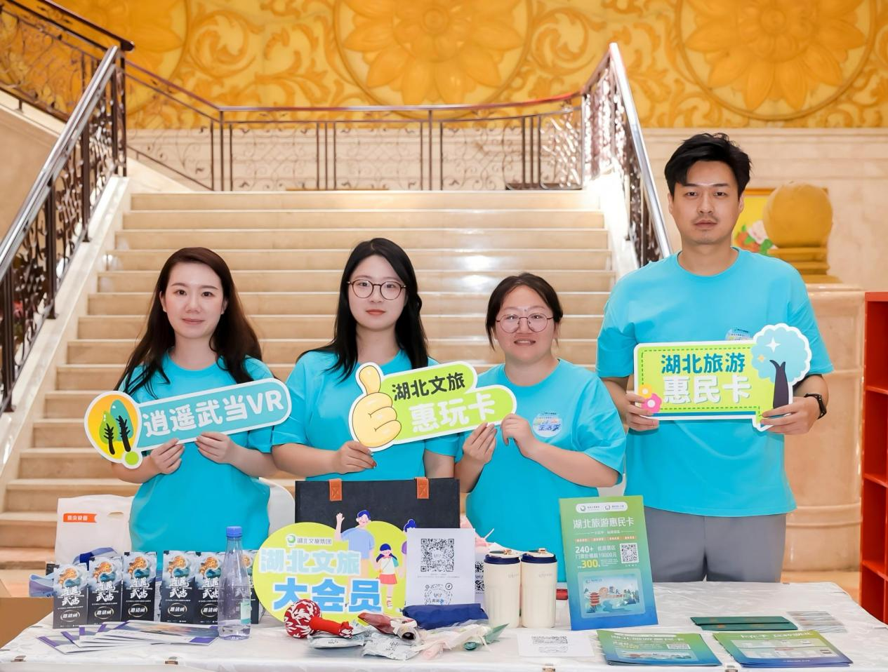 數旅集團在現場擺展,工作人員主動介紹“湖北文旅大會員”權益、湖北文旅惠玩卡產品、湖北旅游惠民卡產品和《逍遙武當》VR大空間沉浸式體驗項目,吸引了大量游客駐足。