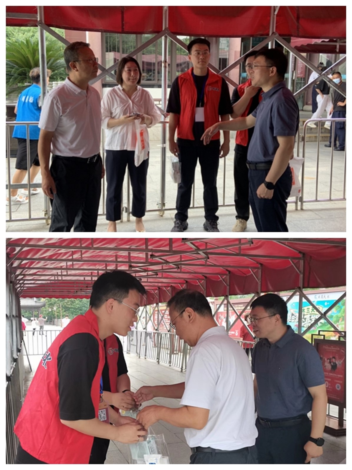 來到現場,羅欽為一線地推人員送上礦泉水、藥品、風扇等防暑降溫用品,與運營中心地推人員進行親切交談,詢問了解地推掃碼效果及黃鶴樓景區入園人流情況,對高溫天氣下辛勤工作的一線職工給予肯定,叮囑他們在做好工作的同時,要多保重身體,注意勞逸結合。