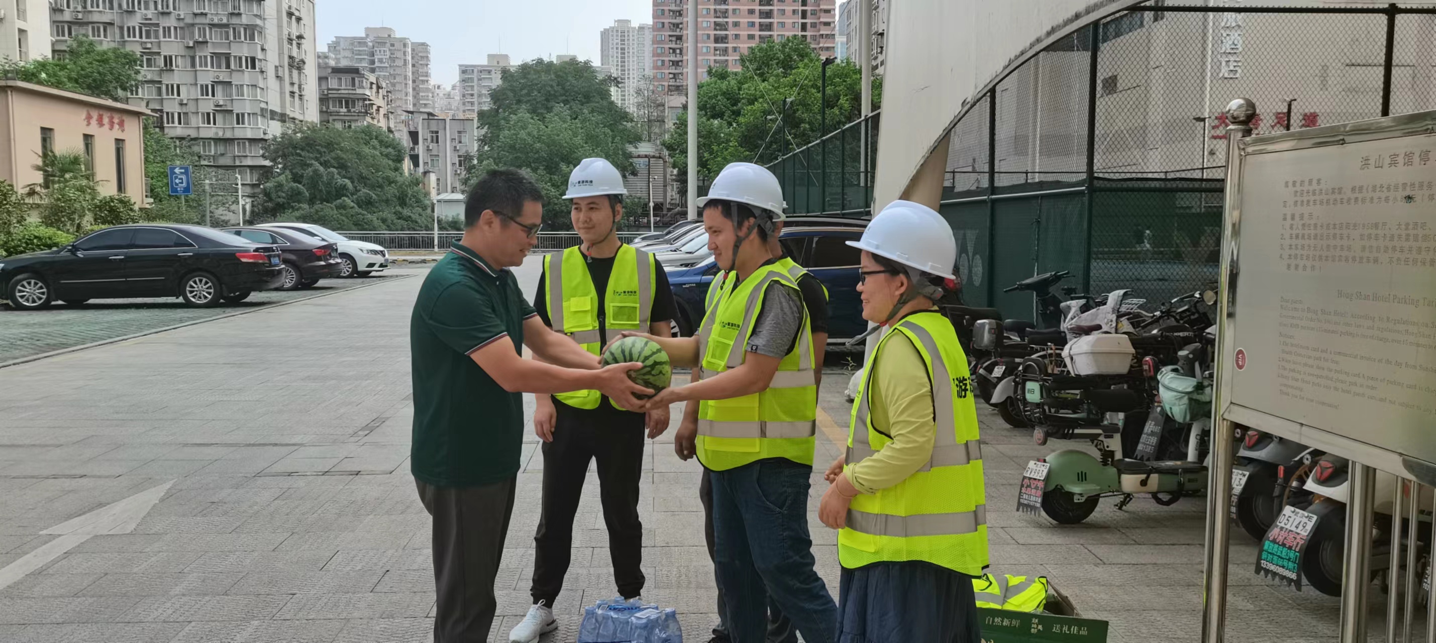 8月9日,數旅集團工會“關愛職工 夏送清涼”活動走進洪山賓館項目施工現場,為項目工地一線員工送去工會的關懷,現場發放西瓜、涼茶等防暑降溫物品。慰問組肯定全體參建人員不怕吃苦、迎難而上、艱苦奮斗的精神,同時勉勵大家要把握良好發展機遇,筑牢安全發展底線,確保項目如期完成。