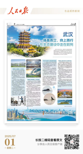 《人民日報》整版報道武漢發展成就。2024年武漢GDP超2.1萬億元,增長5.2%,外貿規模突破4000億元。武漢加速轉化科教人才優勢,全球創新集群排名第13位,籌建產業創新聯合實驗室。交通樞紐建設方面,陽邏港集裝箱吞吐量238.1萬標準箱,中歐班列發運1008列,天河機場多項指標居中部第一。生態治理成效顯著,長江武漢段水質連續5年Ⅱ類,“武碳江湖”用戶達160萬。文旅融合方面,黃鶴樓、東湖等景區吸引大量游客,“光谷光子號”空軌成新地標。武漢市擇高而立,在支點建設中走在前列。